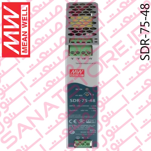 مشخصات فنی منبع تغذیه سوئیچینگ ریلی مین ول Mean Well مدل SDR-75-48 :