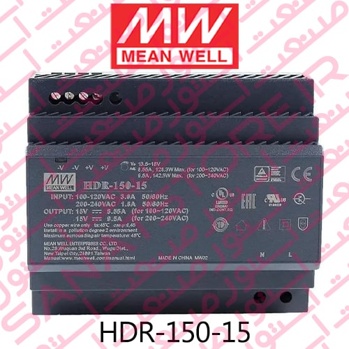 مشخصات فنی منبع تغذیه سوئیچینگ ریلی مین ول Mean Well مدل HDR-150-15 :
